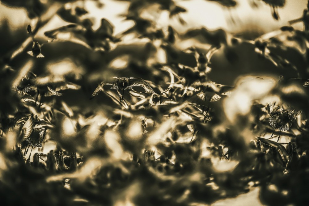 一部别具一格的鸟类影像作品,摄影师吴雨敏并未仅仅停留于对鸟儿的浅显描绘和传统审美记录,而是在昏暗的光线与幽深的阴影中,波光粼粼的水面上,巧妙运用噪点、模糊等摄影技巧,捕捉鸟儿在不同生态环境中的鸟语与生命力,使得鸟儿的生活与繁衍在偏远山野、波涛起伏的大海上显得更加神秘而深邃,营造出一种别具一格的情绪氛围。这种大胆的尝试不仅展现了吴雨敏对摄影艺术的深刻理解,也映射出她对视觉艺术创新的执着追求与与众不同的风格。文/阿音